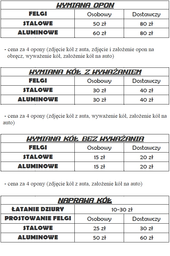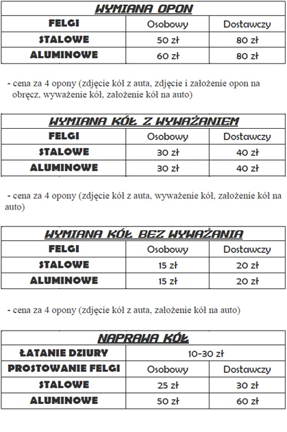 - opony renomowanych firm do wszystkich typów samochodów osobowych i dostawczych,